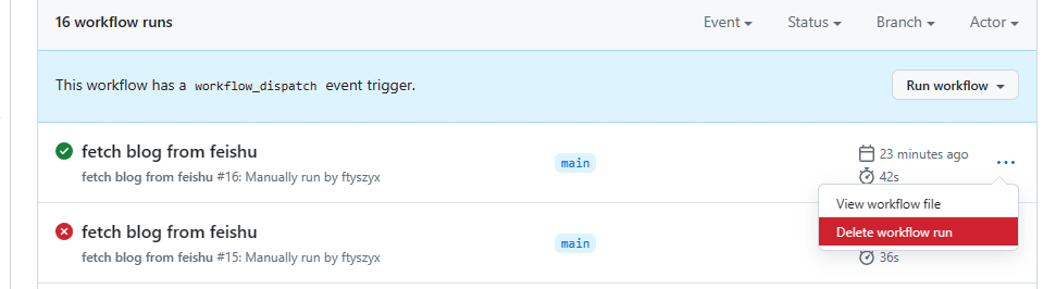 然后把这个workflow右边的run log全删除