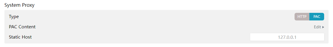 开 Specify Protocol 或者 System Proxy 的 Type 换成 PAC 。