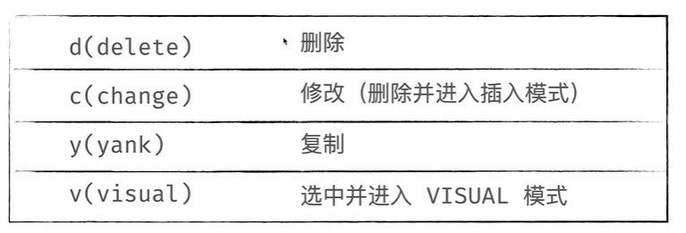 第一个字母是动作:c(修改) d(删除) y(复制)v选中