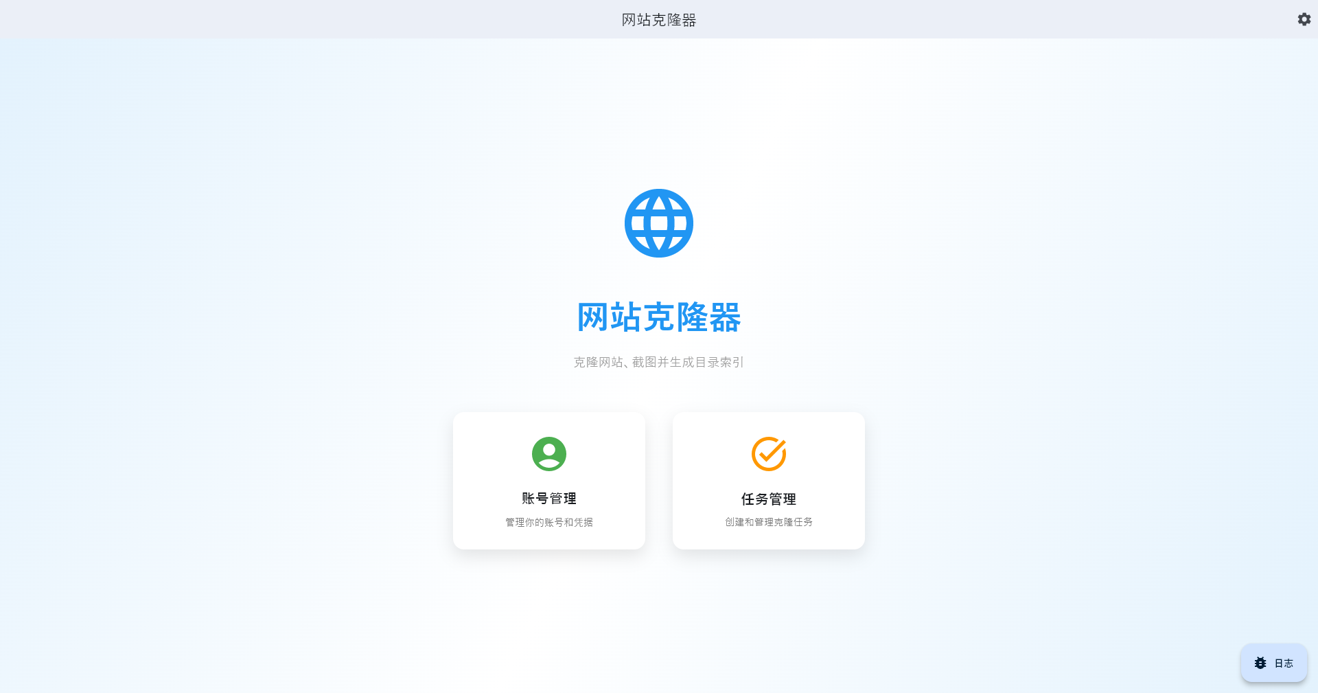 两个功能,一个是账号管理,一个是任务管理
