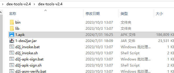 d2j-dex2jar.bat -f 1.apk结果就是1-dex2jar.jar