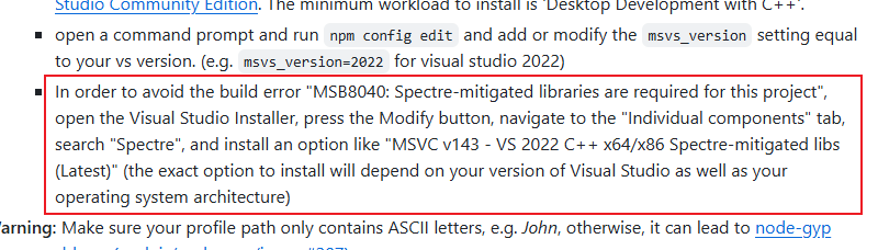build error "MSB8040: Spectre-mitigated libraries are required