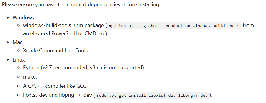 the module (for instance, using `npm rebuild` or `npm install`).3.1 安装系统编译环境