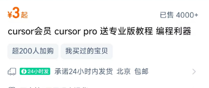 因为cursor官方没有账号注册限制,有一个邮箱就可以注册 ,这帮人竟然拿这个做起了生意,来在淘宝公开卖?