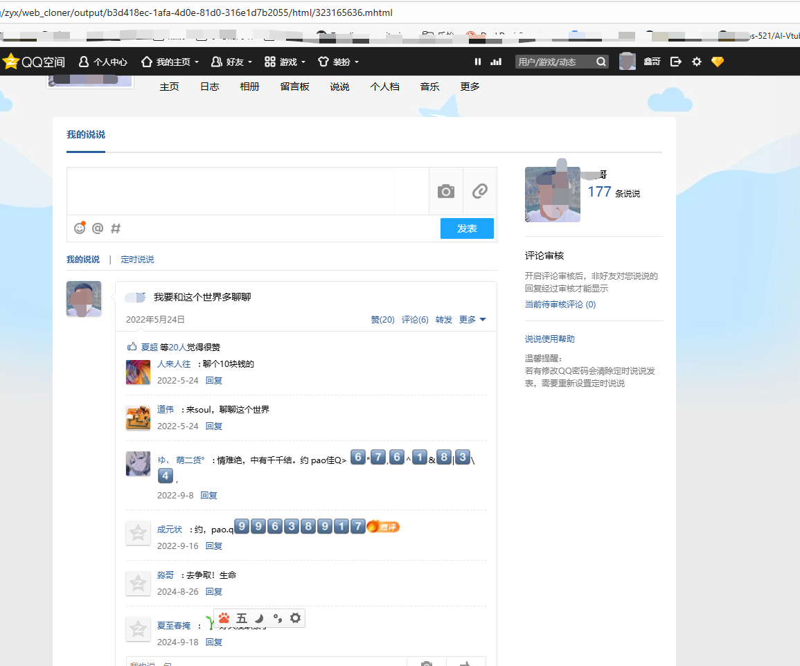 qq说说有点特殊,他是通过分页